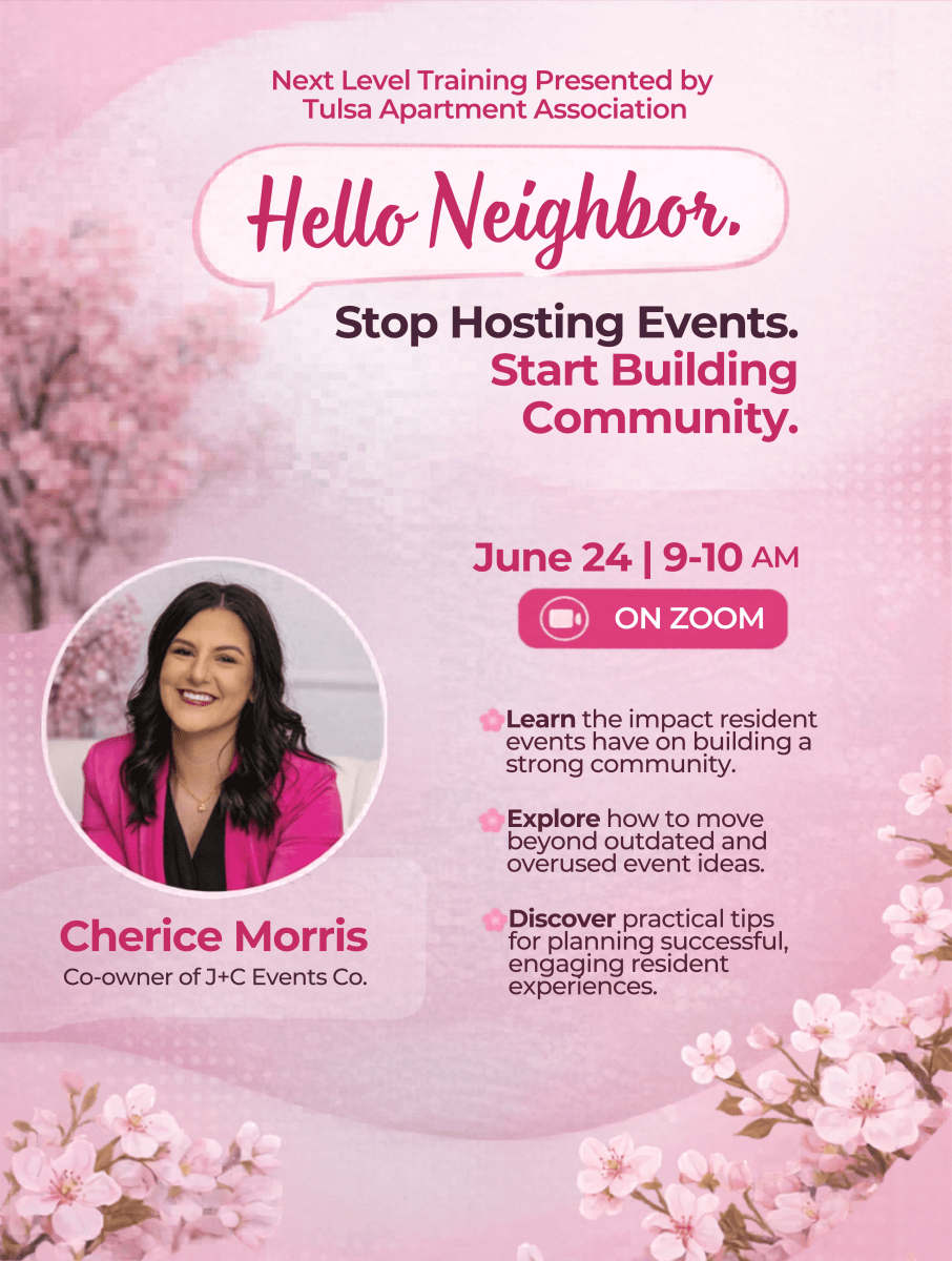 By participating in this event I agree and acknowledge that I am undertaking participation in Tulsa Apartment Association (TAA) events and activities as my own free and intentional act and am fully aware that possible physical injury or illness might occur to me as a result of my participation in these events. I give this acknowledgment freely and knowingly and that I am, as result, able to participate in TAA events and I do hereby assume responsibility for my own well-being. I agree to hold TAA harmless in the event that I incur any physical or mental injury, including illness, that might be attributed to my participation in the event.